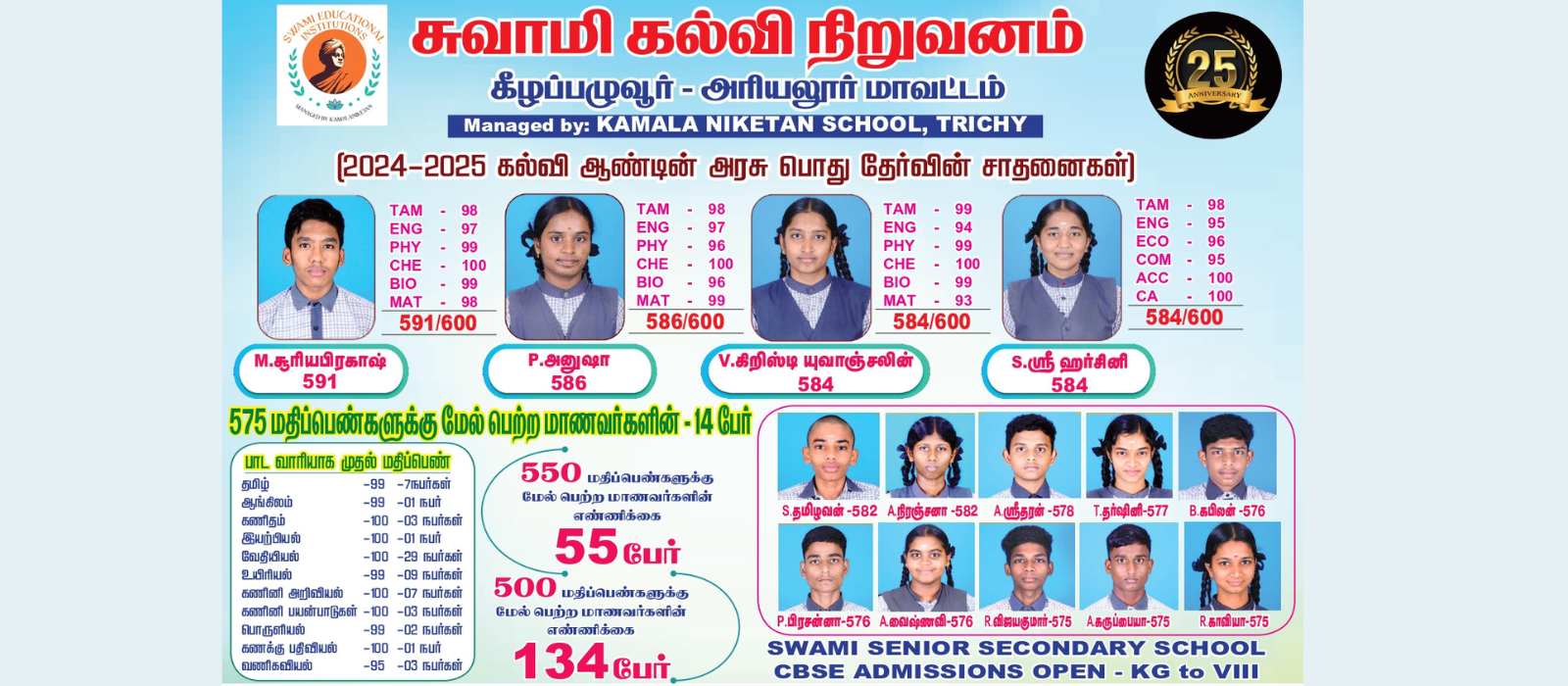 Our school was started on 1999 as SWAMI MATRICULATION HIGHER SECONDARY SCHOOL run by CHELLAMMAL EDUCATIONAL AND CHARITABLE TRUST. Later on, in 2015 it has been developed as two separate schools for both male and female as swami matric.hr.sec.school and swami girls matric hr.sec.school and running tamil medium also. Separate hostel facilities are maintained for both boys and girls and the school is maintained in two campuses. Bus facilities are provided for more than 150 villages and 30 buses are available for the students in a safe manner with camera installed in them. In order to make the learning easier and lively , lab facilities are provided for maths, physics, chemistry, biology, computer science and communicative English. Our school is renowned for handwriting and we give best communicative skill to our rural pupil.